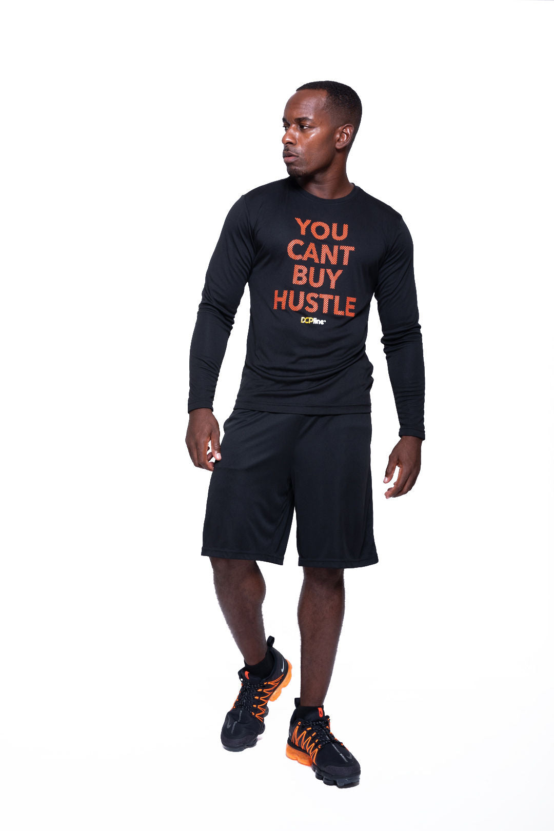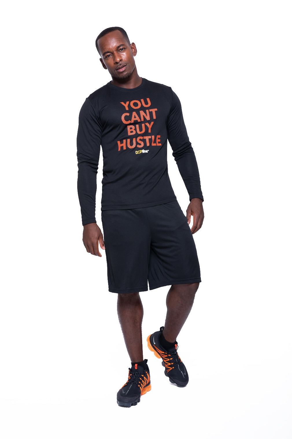 You Can't Buy Hustle Long Sleeve Black w Orange (Performance Tee)